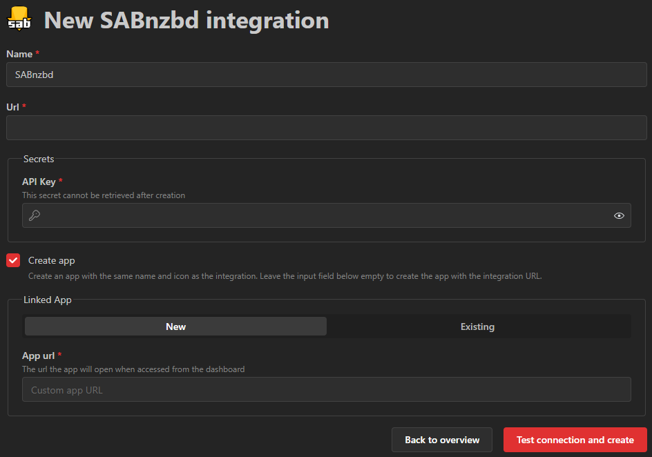 It is not allowed to create an integration without passing the test. This is to ensure that you minimize the amount of broken applications on your Homarr instance. The test and create button will perform a network request to the application and authenticate if required.