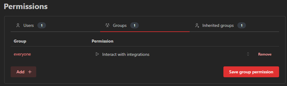 On the edit page of an integration, you can manage which users / groups can
